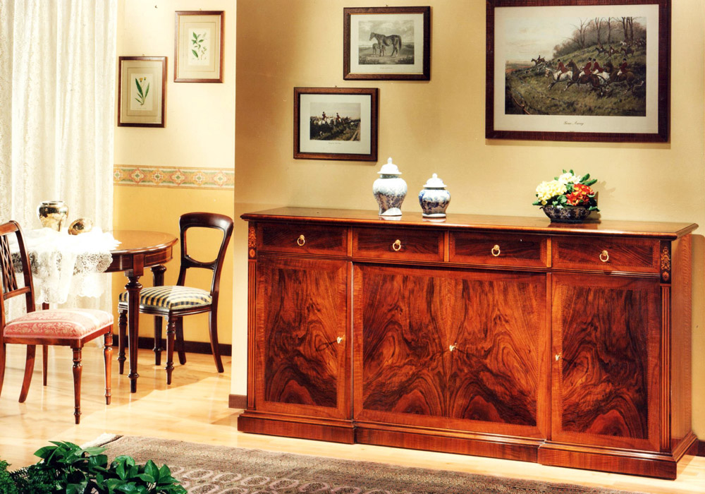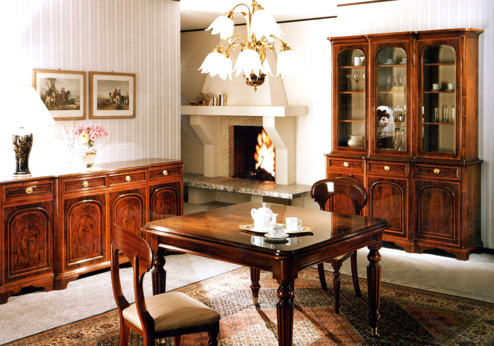 La lavorazione e la decorazione dei tavoli firmati Pozzi Umberto sono sempre eseguite a mano, esattamente come l'antica tradizione di falegnameria suggerisce.