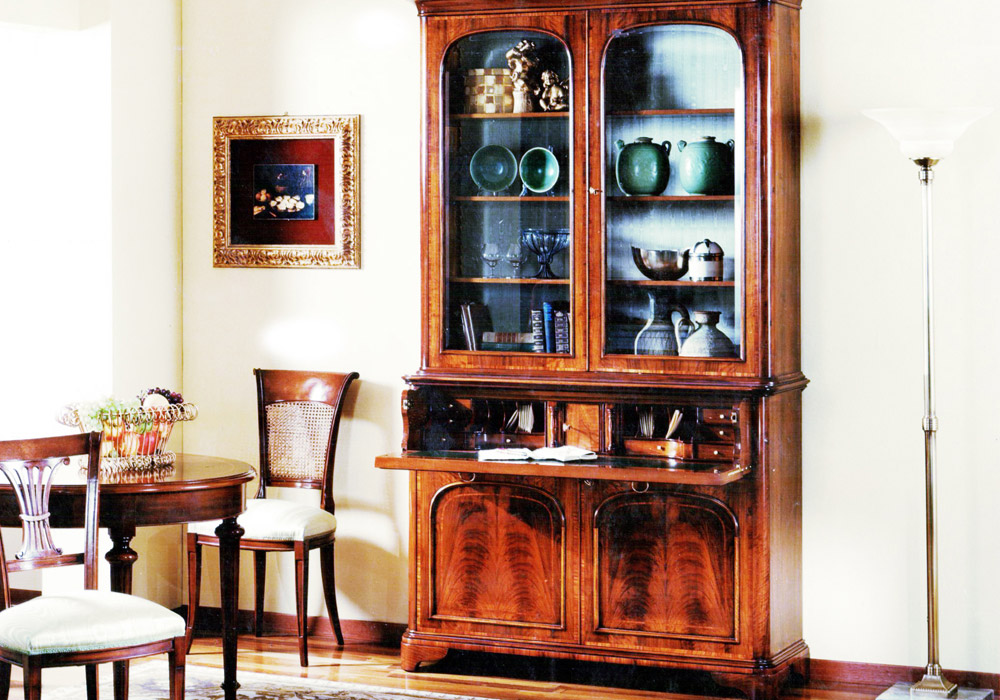 Vetrine dalle linee semplici e pulite oppure bombate e sinuose per accontentare le esigenze e i gusti di ogni cliente. Pozzi Umberto saprà realizzare anche la versione a scrittoio con anta a ribalta che nasconde piccoli spazi e cassetti.